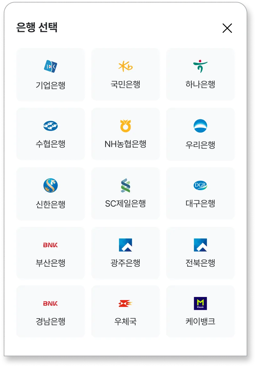 실시간 지급계좌를 발급 받을 은행을 선택합니다.