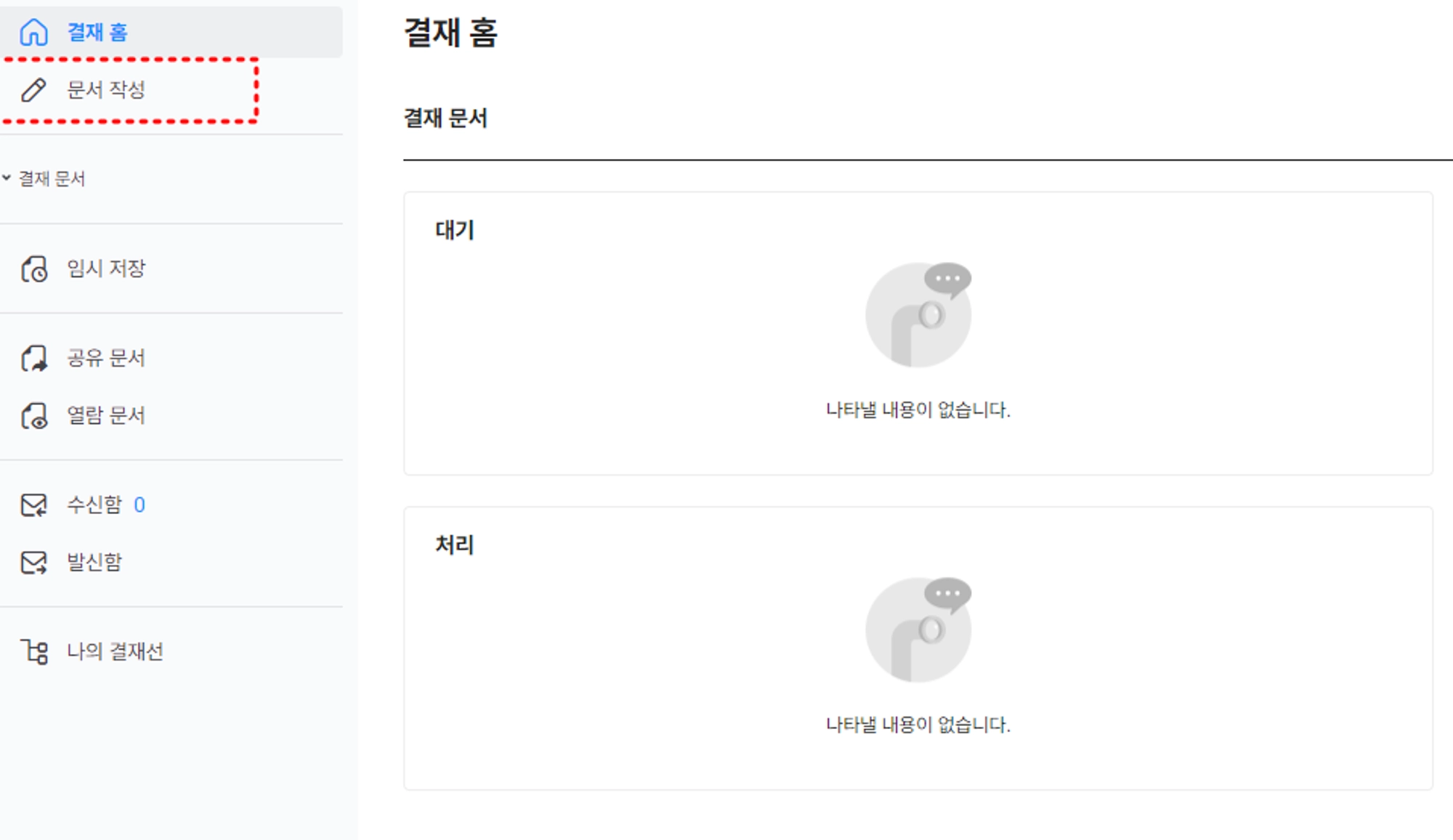 결재 홈 하부메뉴 [문서작성]을 선택 합니다.