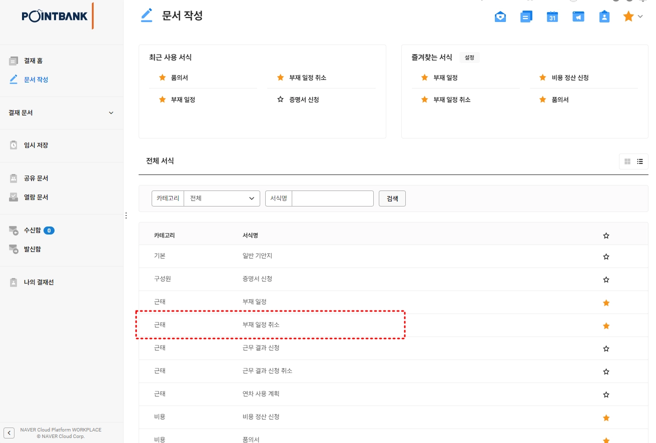 전체 서식 중 [부재 일정 취소]를 선택 합니다.