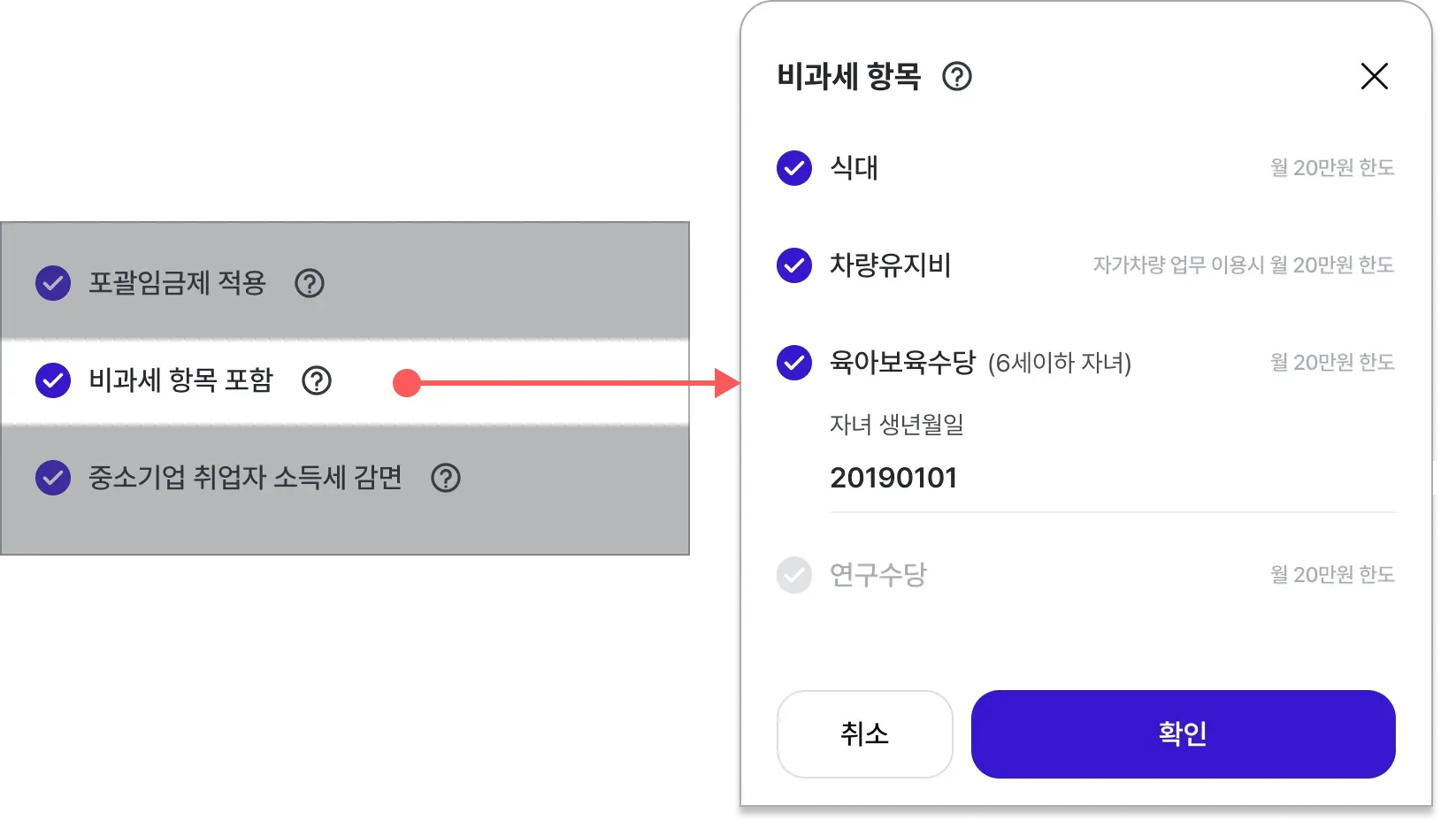 7. 비과세 포함 설정 (월급, 연봉만 가능)