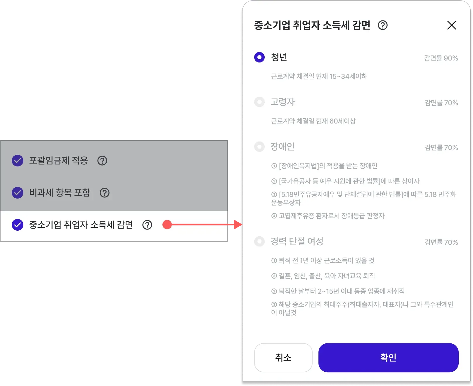 8. 중소기업 취업자 소득세 감면 설정