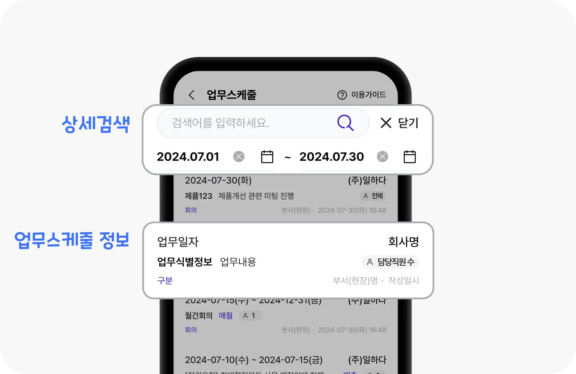 를 등록하는 메뉴입니다. 부서(현장)별로 업무를 등록하고, 담당 직원을 선택하여 손쉽게 업무욫