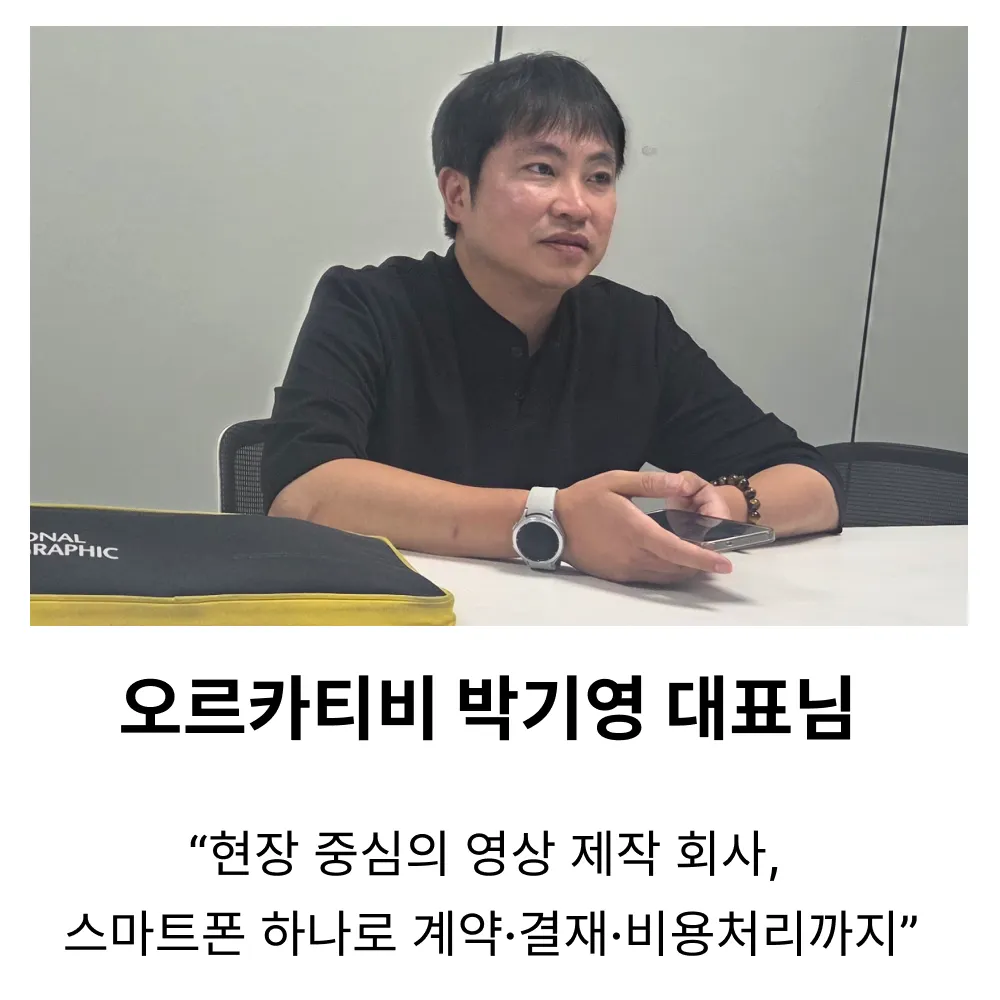 카메라 뒤에서 바쁘게 움직이는 사람들, 무거운 장비를 옮기는 스태프, 그리고 감독과 배우가 대본을 맞춰보는 현장. 영상 제작의 세계는 언제나 시간과의 싸움입니다. 하지만 촬영이 끝났다고 일이 끝나는 건 아닙니다. 외부 감독과 배우, 프리랜서 스태프와의 계약서 작성, 촬영에 쓰인 비용 정산, 각종 결재 승인까지… 본업만큼이나 행정 업무가 뒤따르죠. 오르카티비 박기영 대표 역시 “촬영이 끝나면 또 사무실에서 일 시작”이라는 일상이 반복됐습니다. 그러던 중에 '1HADA’ 앱을 만나면서 현장에서 바로 계약·결재·비용 처리가 가능해졌고, 업무의 흐름이 완전히 달라졌습니다. 이번 인터뷰에서는 박 대표가 직접 들려주는 현장 중심 회사의 업무 효율화 비결과 ‘1HADA’가 만들어준 변화를 소개합니다.
