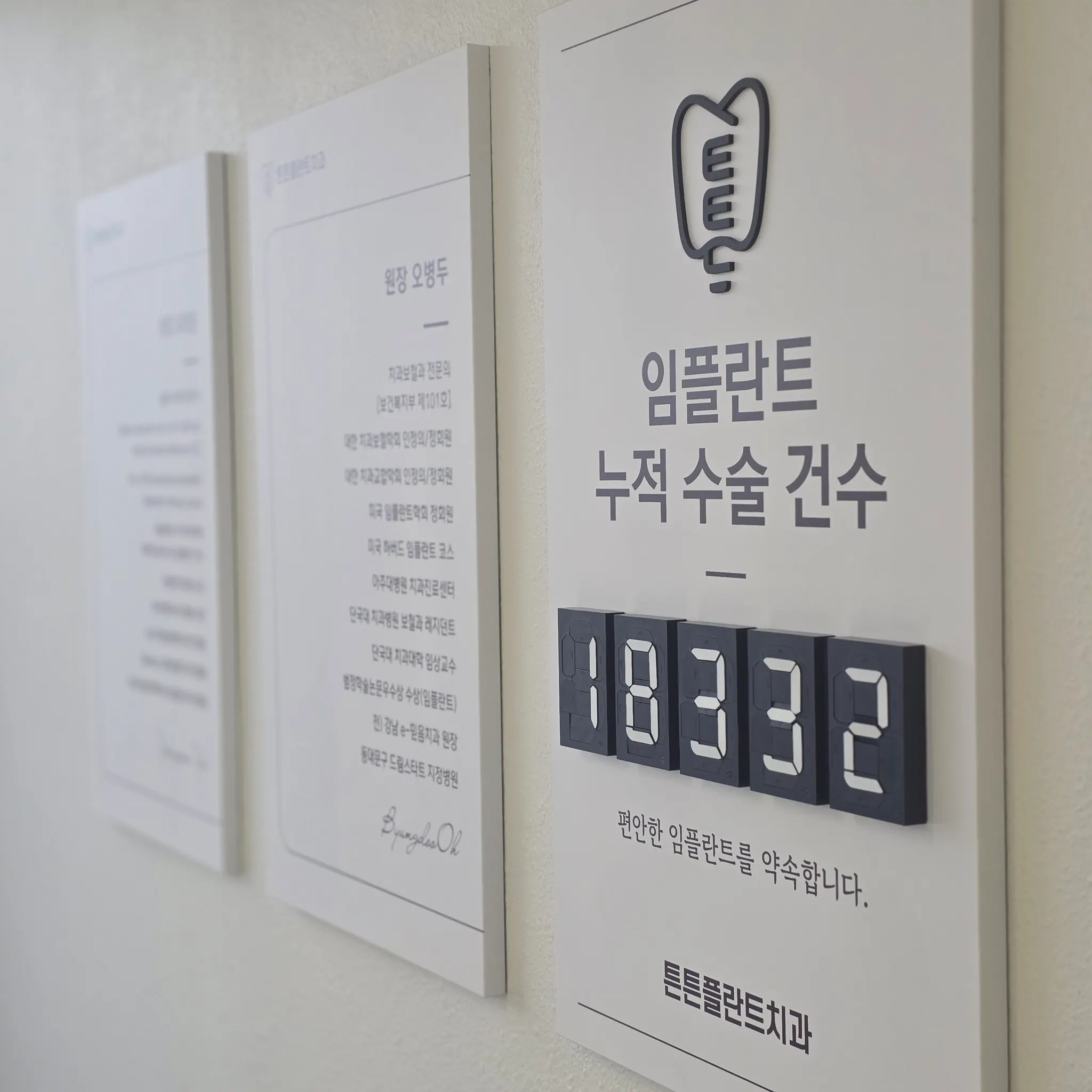 그래서 저희가 중요하게 생각하는 건 ‘빨리 치료하는 것’이 아니라, 안전하고 정확하게 치료하는 것, 그리고 치료가 끝난 뒤 환자분이 안심할 수 있는 경험을 드리는 겁니다. 임플란트 같은 큰 진료부터 스케일링 같은 기본 관리까지, 항상 환자분의 이야기를 충분히 듣고 가장 적합한 방법을 찾아드리려 합니다. 치과는 단순히 치료하는 곳이 아니라, 환자분의 불안을 줄여드리는 공간이어야 한다고 믿고 있습니다.” 저희 튼튼플란트 치과의원은 바로 그런 곳입니다.