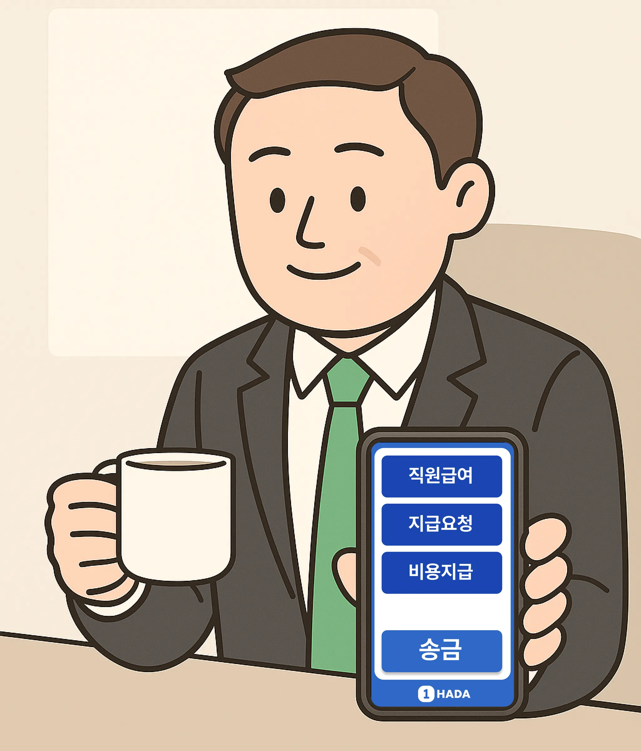 직원 급여이체, 비용지급, 거래처 송금까지 모두 1HADA에서 승인과 송금이 한 번에!