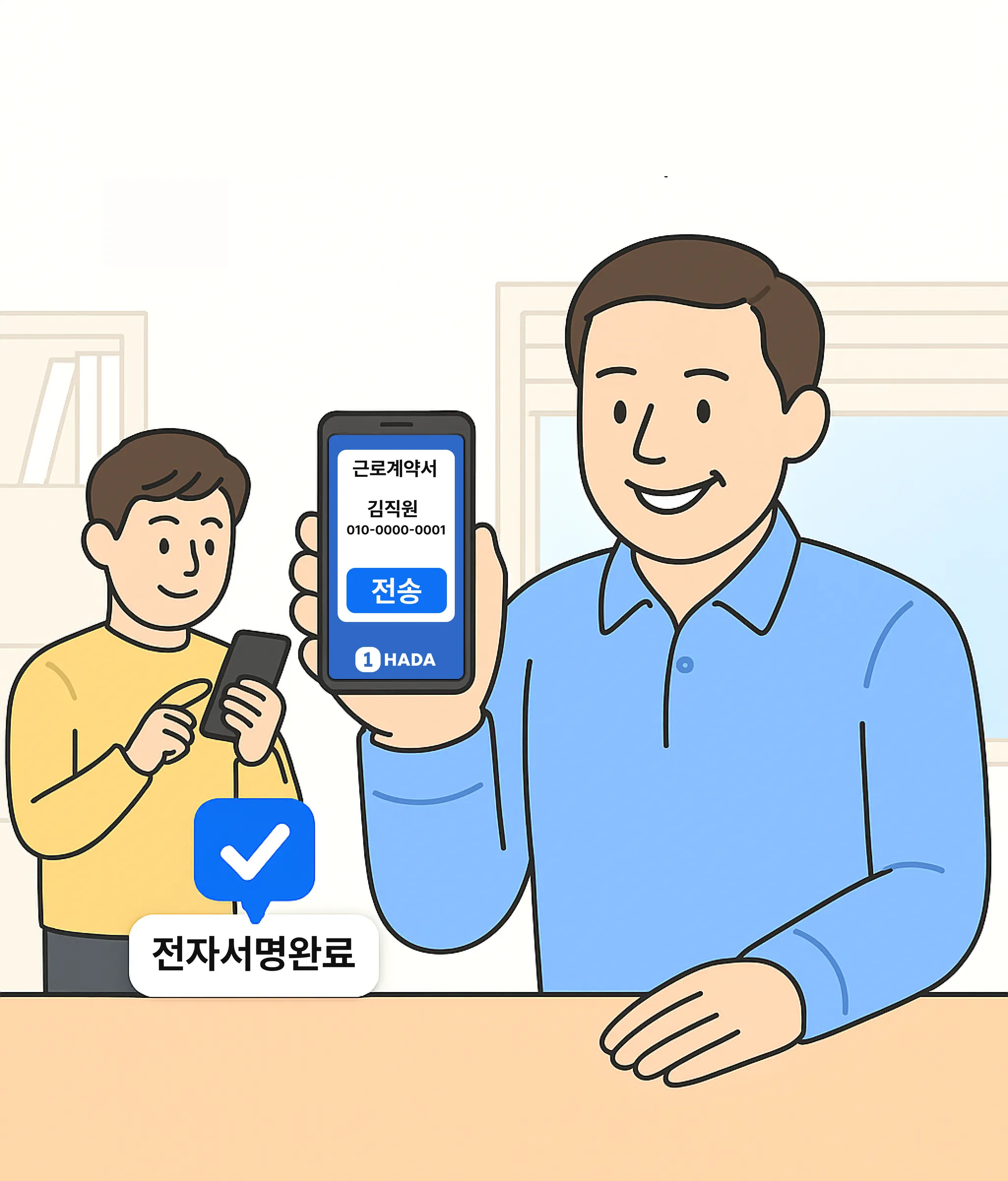직원은 정보입력과 전자서명만 하면 끝! 사장님은 ‘계약완료’ 알림만 확인하시면 됩니다.
