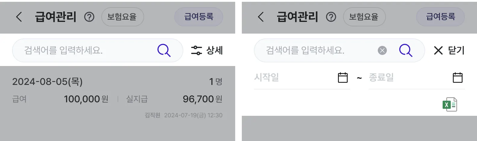 검색어조회 : 특정 검색어(직원명)로 찾고자하는 급여내역을 빠르게 확인할 수 있어요.