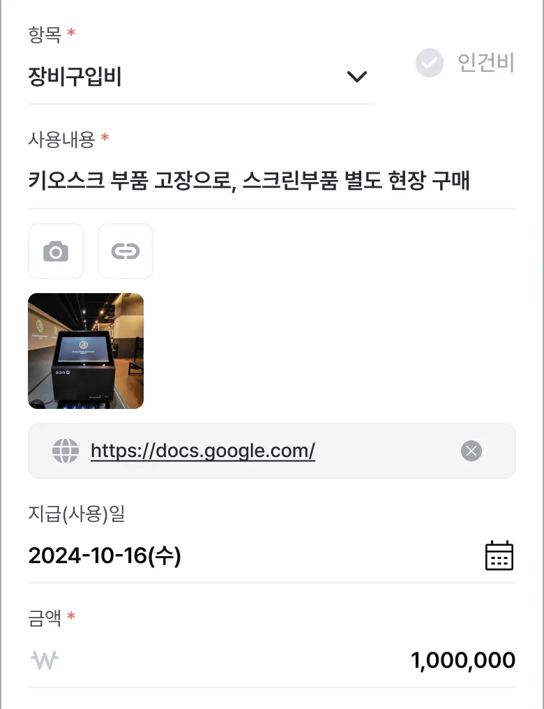 법인카드 또는 법인현금으로 지출한 내역을 등록합니다.