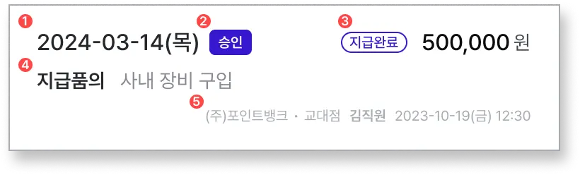 ❸ 금액 : 지급여부 상태와 사용(지급)금액이 표시됩니다.