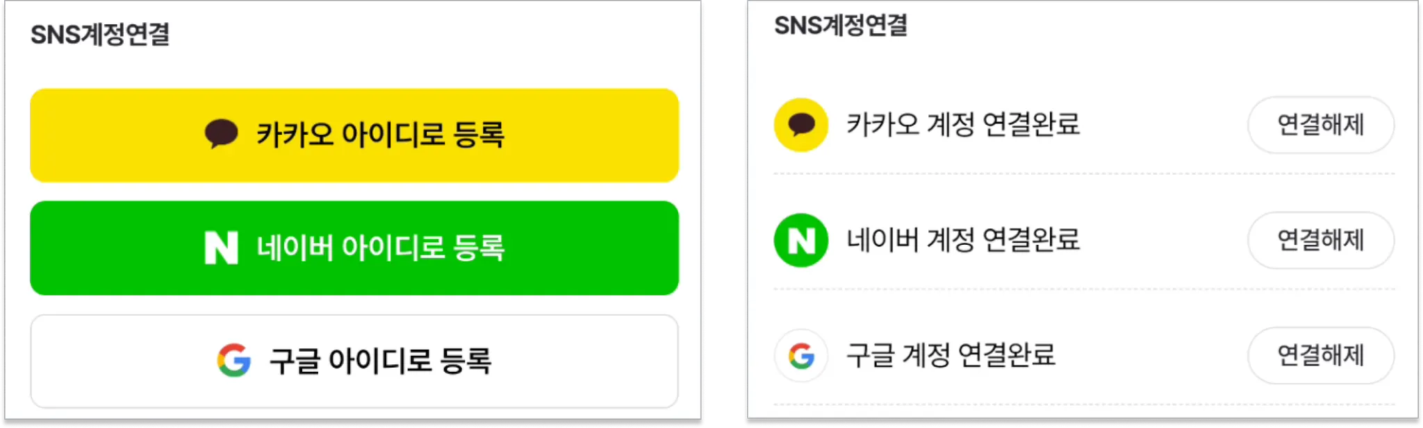 연결된 후에도 ‘연결해제’를 선택하면 언제든 해당 SNS 연결이 해제됩니다.
