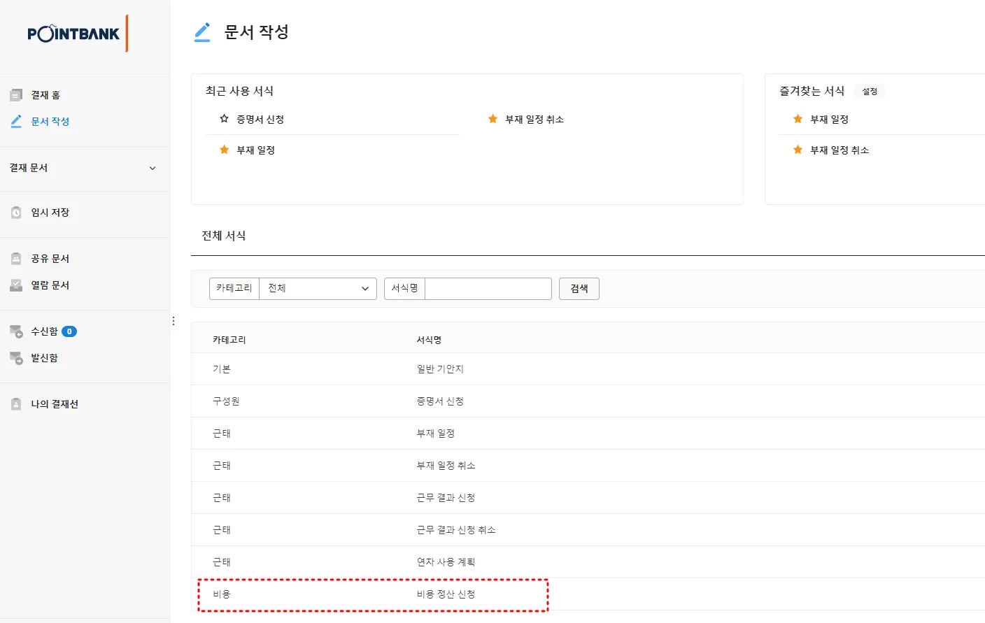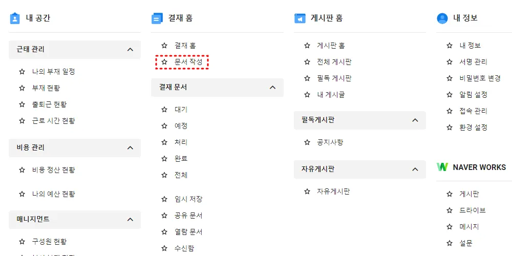 결재 홈 > [문서 작성] 을 선택 합니다.