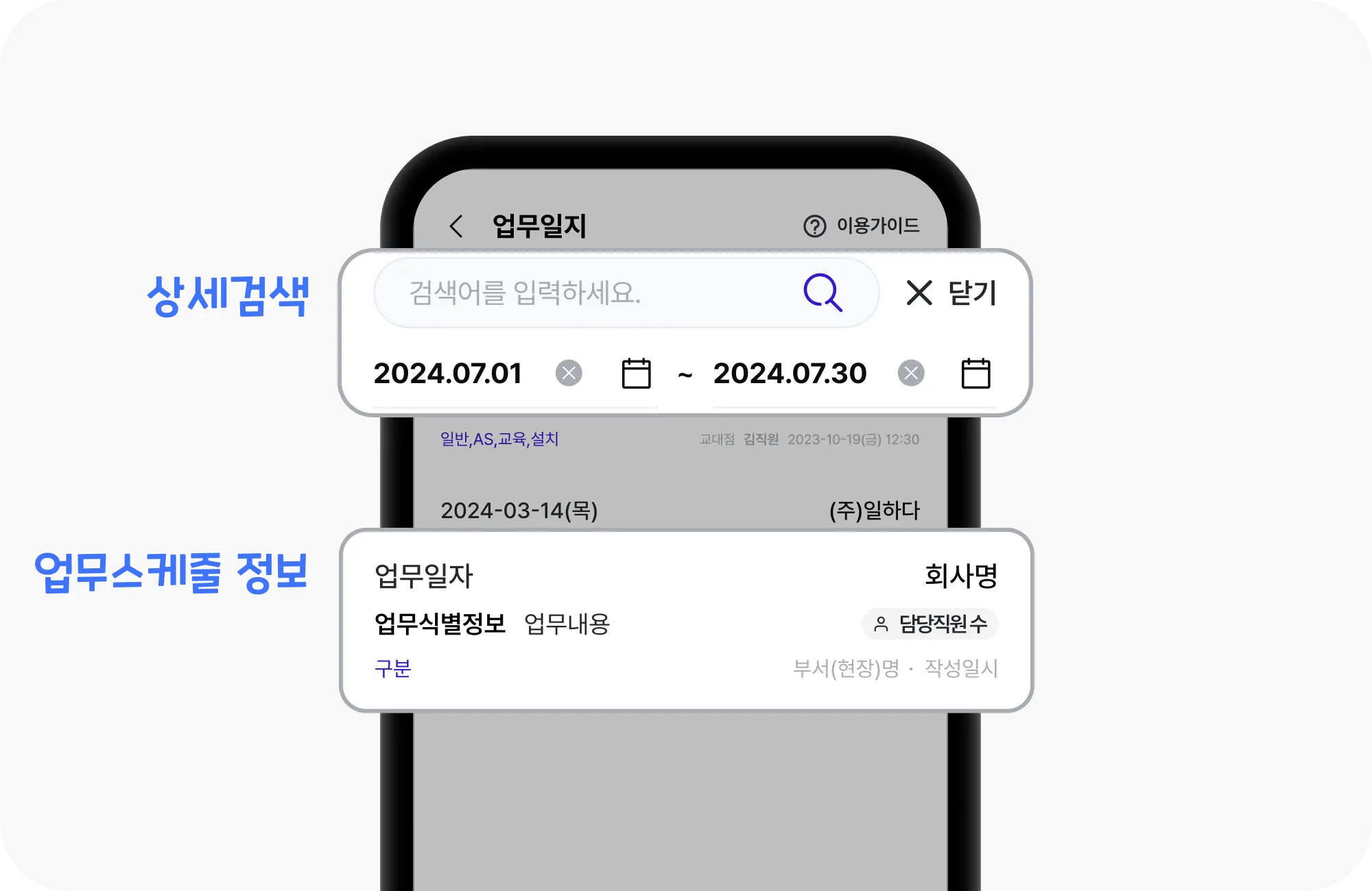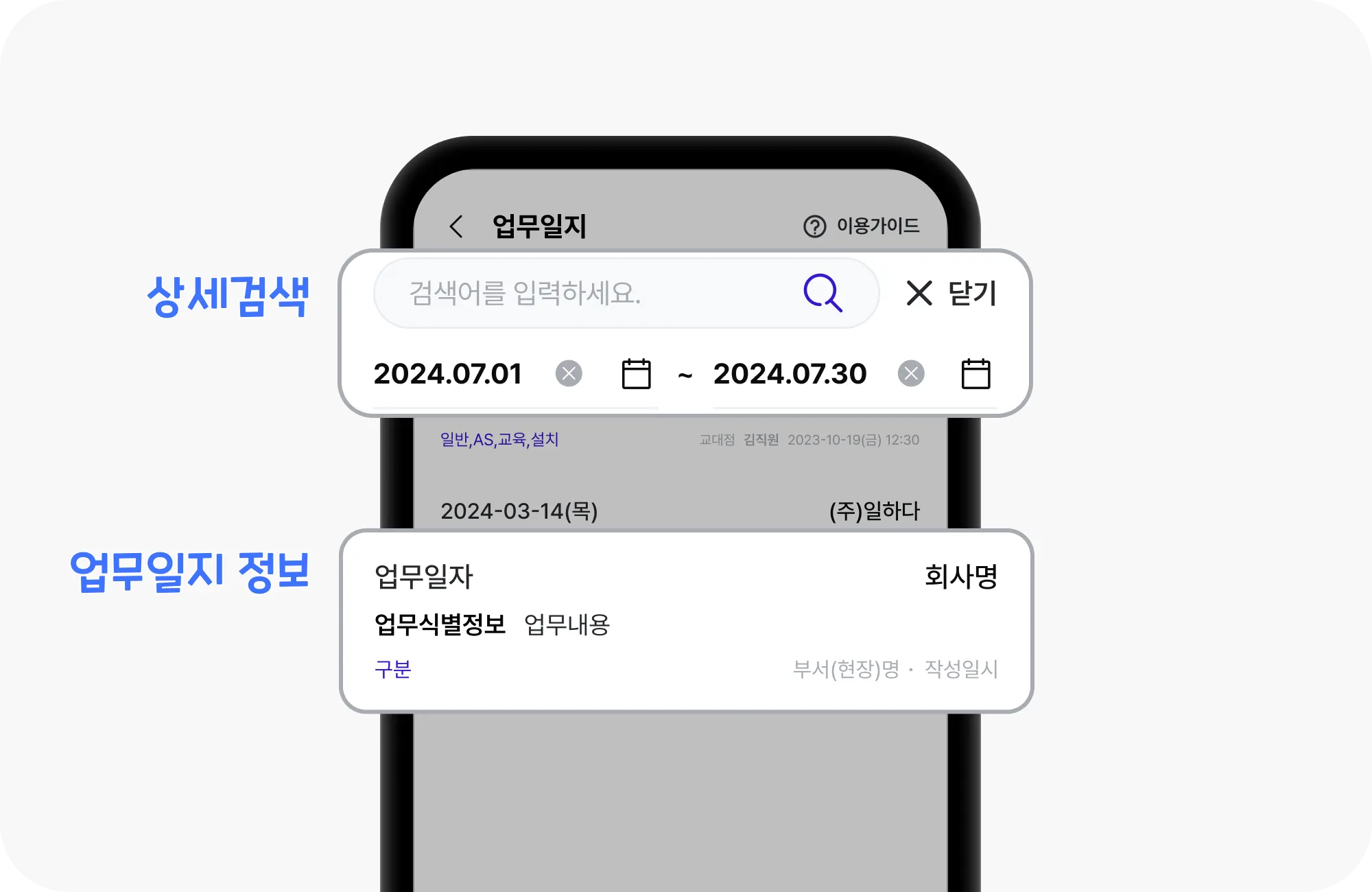 완료한 업무를 등록하는 메뉴입니다. 업무내역을 체계적으로 보관할 수 있고, 관리자가 업무내용을 실시간으로 확인할 수 있어요.